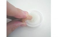 ブラシの付いた蓋を上向に置き、補聴器の音口(音の出口)を軽くサッサッとブラッシングするだけ。